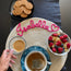 La tovaglietta ha un diametro di 38,5cm, e si può personalizzare con un nome o una parola a vostra scelta.